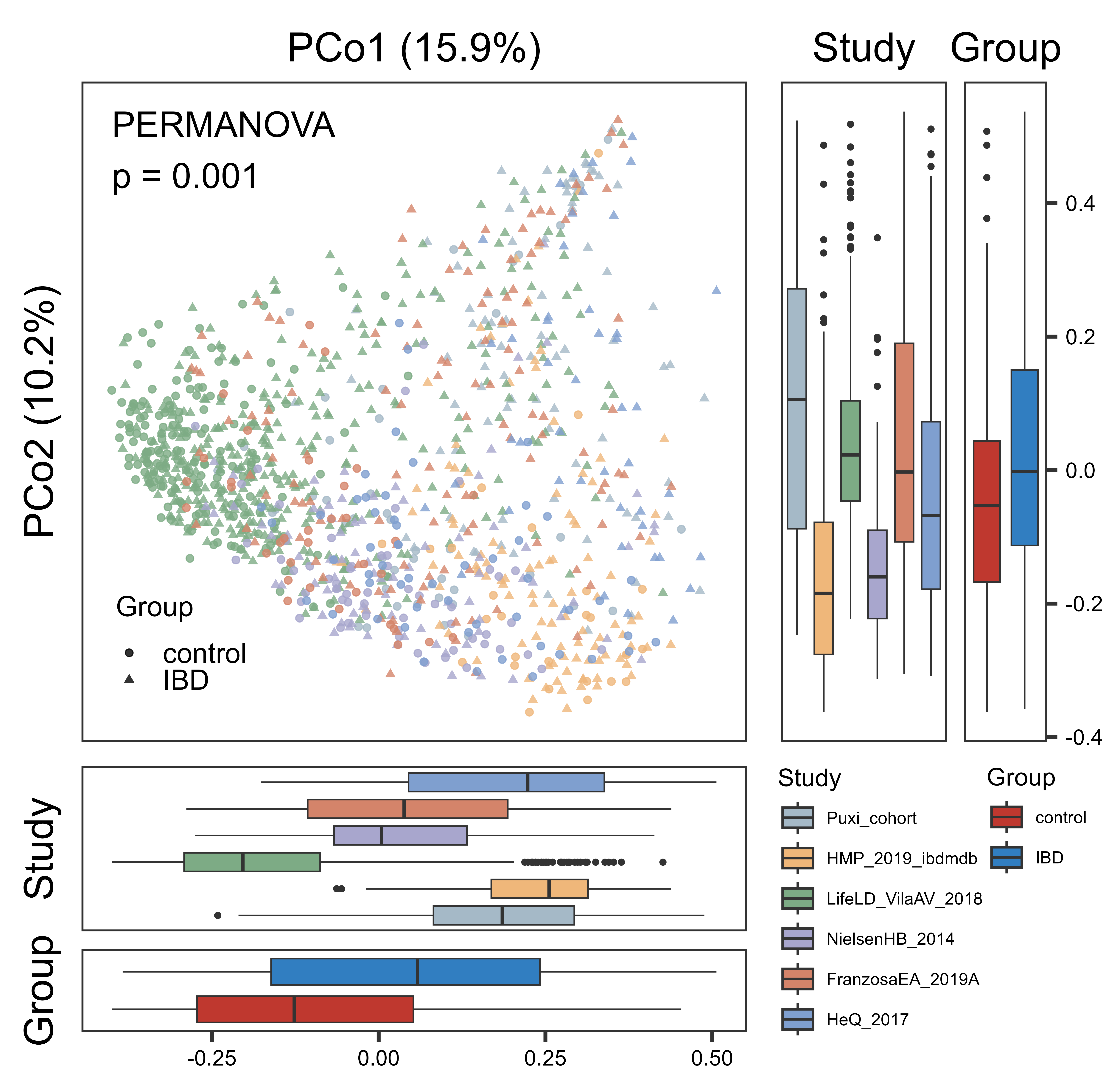 一维变量(ComplexHeatmap包)+上/下三角为2个分组(同一配色)